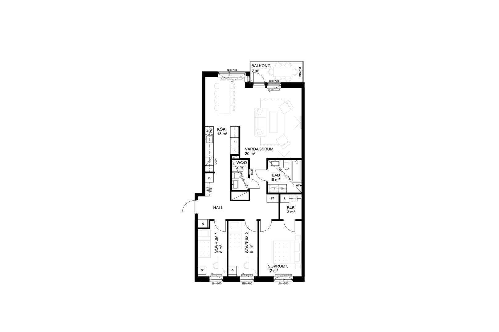 Välplanerad familjelägenhet om fyra rum och kök med genomgående planlösning, balkong och två badrum. Kök och vardagsrum har en delvis öppen planlösning, med ett praktiskt parallellkök intill den trevliga matplatsen och en rymlig vardagsrumsdel med plats för soffa och umgänge för hela familjen. Från vardagsrummet når man också den mysiga balkongen. De tre sovrummen hittar vi i andra änden av lägenheten, vilket blir en mer privat del. Det största sovrummet har en praktisk klädkammare. Med två badrum behöver det inte bli trångt kring morgonbestyren, här har du också lyxen av att ha ett badrum med dusch och ett med badkar och dessutom egen tvättmaskin och torktumlare. Alla bekvämligheter man kan önska för en enklare vardag.9 images