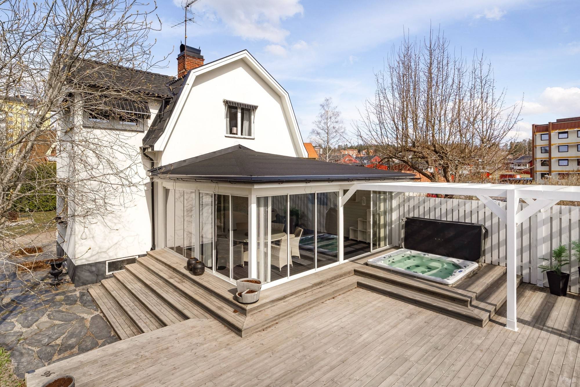 Välkommen till denna estetiskt tilltalande villa, belägen mitt i centrala Fagersta. Bostadens entréplan erbjuder en stor hall med flera garderober, ett ljust kök med en vedspis samt ett vardagsrum där en murad öppen spis med kassett finns. På det övre planet finns ett duschrum och två sovrum. Källarplan med hobbyrum/gästrum, pannrum, tvättstuga samt förrådsutrymmen - perfekt för både förvaring och fritidsintressen. Utomhus väntar en stor inglasad altan som förlänger utesäsongen rejält. Härifrån nås en vidbyggd terrass med spabad – en privat oas för avkoppling och sociala stunder, oavsett årstid. Villan är utrustad med vattenburen värme kopplad till en energieffektiv luft/vatten-värmepump, vilket ger låga driftskostnader och ett bekvämt inomhusklimat året om. Taket är omlagt, vilket ger extra trygghet för framtiden. Detta är ett hem som erbjuder både stil, komfort och funktion – perfekt för dig som söker ett inflyttningsklart boende med det lilla extra. Här bor du i hjärtat av Bergslagen med närhet till både service och upplevelser. I centrum finns ett bra utbud av butiker, restauranger, caféer och vardagsservice, samtidigt som skolor, förskolor och kommunikationer finns på bekvämt gångavstånd. Staden är väl sammanlänkad med både Västerås och övriga regionen via järnväg och riksvägar, vilket gör pendling enkel . För den som uppskattar natur och fritid finns det gott om möjligheter. Fagersta omges av skogar, sjöar och vackra vattenmiljöer, bland annat den idylliska Strömsholms kanal som bjuder på båtliv, promenader och naturnära upplevelser . Här finns även ett rikt utbud av aktiviteter – från idrott och föreningsliv till bibliotek, evenemang och kultur . Fagersta är dessutom rikt på historia och sevärdheter. I närheten hittar du exempelvis Engelsbergs bruk – ett världsarv – samt Fagersta Bruksmuseum och flera natursköna utflyktsmål . Här kombineras kultur, natur och ett aktivt liv på ett sätt som få orter kan erbjuda. Här får du det bästa av två världar – ett lugnt och tryggt boende med närhet till allt du behöver, i en stad där både historia, natur och framtid möts.39 images
